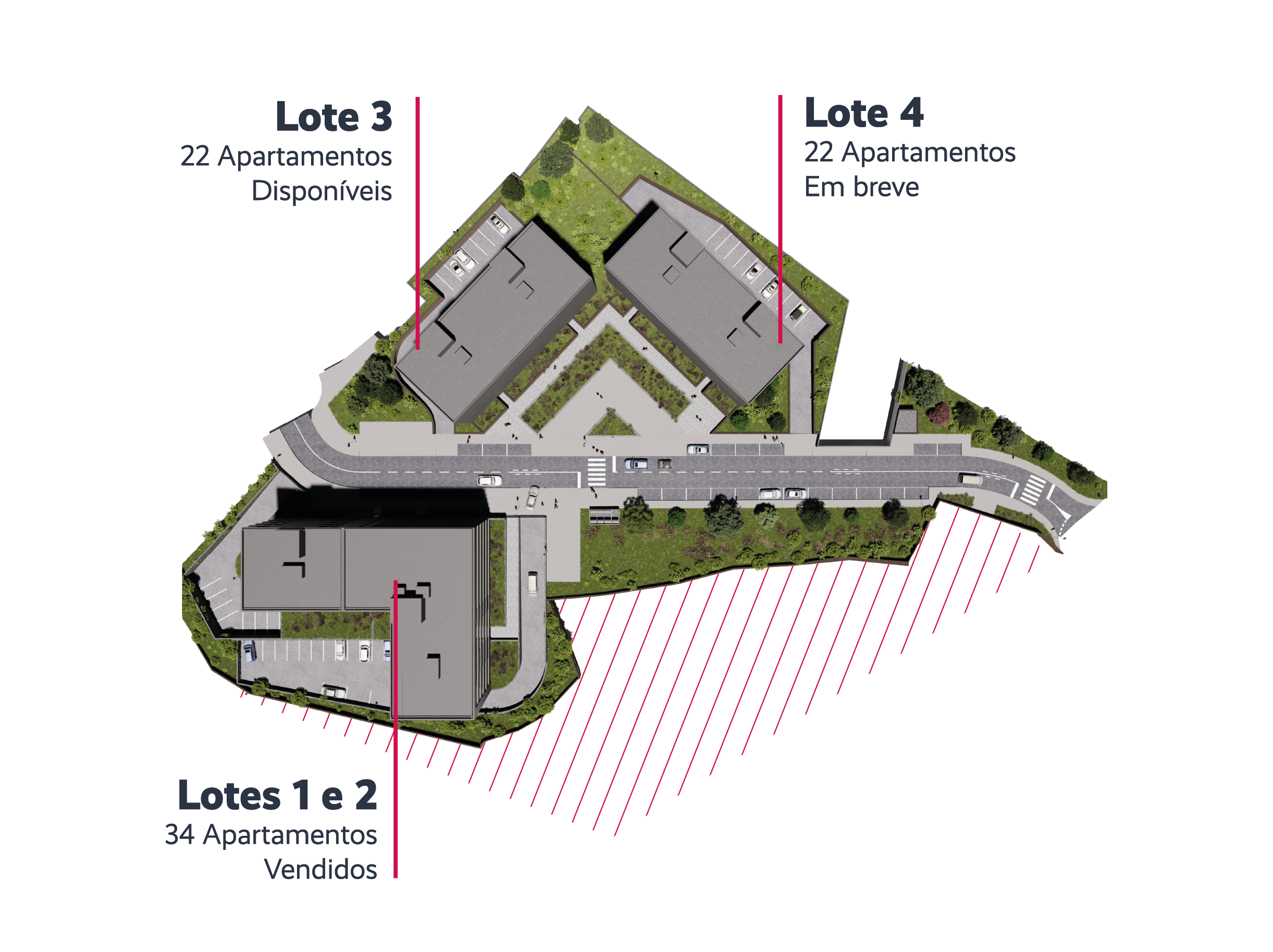 Localizado na Rua do Loreto, na freguesia da Fajã de Baixo, concelho de Ponta Delgada, num terreno urbano com 11.520 metros quadrados de área, o Grupo R está já a construir 2 dos 4 lotes com 6 pisos, destinados à habitação coletiva, de tipologia T1, T2 e T3 de qualidade superior.