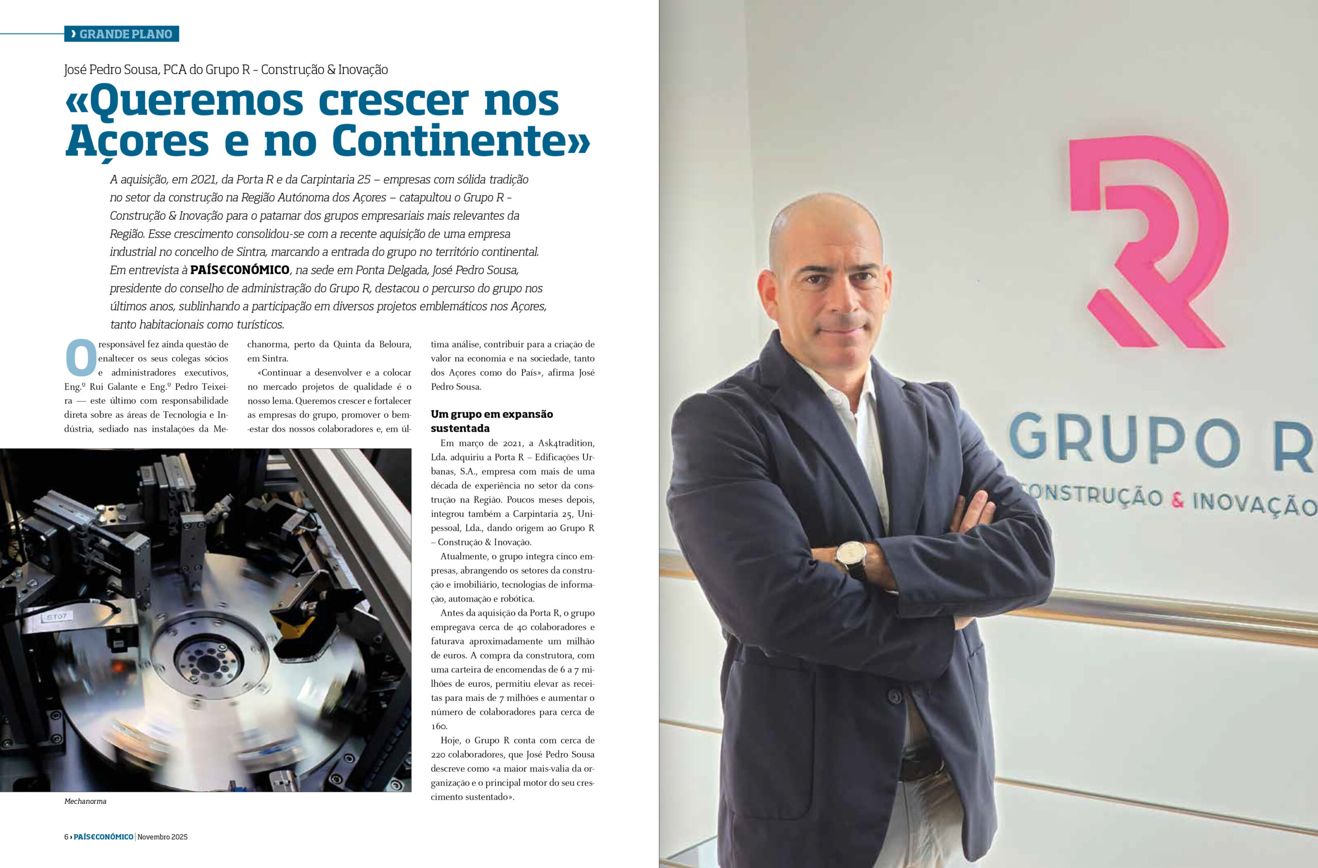 O Grupo R, representado pelo seu PCA – José Pedro Sousa, marcou presença na edição de Novembro de 2025 da Revista País Económico, na rubrica “Grande Plano”.